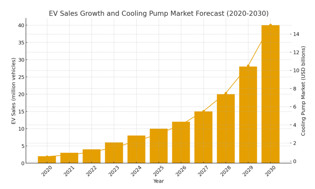 चित्र 2. ईवी बिक्री और कूलिंग पंप बाजार पूर्वानुमान (2020-2030)